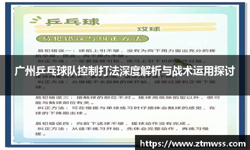 本文将对广州乒乓球队的控制打法进行深入解析,并探讨其战术运用。广州乒乓球队作为国内知名的乒乓球队伍,以其独特的控制打法在比赛中取得了显著成绩。文章将从四个方面进行详细阐述:一是控制打法的基本概念及特点;二是控制打法在比赛中的具体应用;三是训练体系与选手素质培养;四是针对不同对手的战术调整策略。通过这些分析,旨在帮助读者更好地理解广州乒乓球队的成功之道,以及如何通过合理的战术运用来提升整体竞技水平。