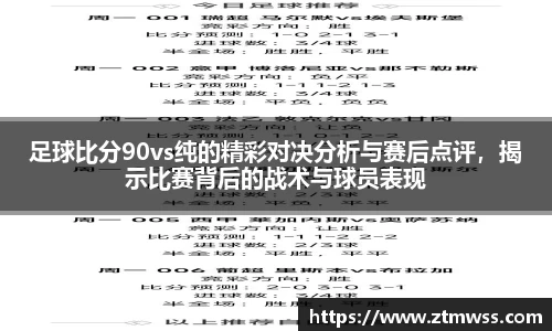本文将对“足球比分90vs纯”的精彩对决进行深入分析与赛后点评,揭示比赛背后的战术布局以及球员的突出表现。首先,我们将回顾比赛的基本情况,包括两队的历史交锋记录和近期状态,为后续分析奠定基础。接着,将重点探讨双方的战术策略,分析教练对于阵型的选择及其对比赛节奏的影响。第三部分将聚焦于球员个人表现,从关键球员的技术特点和临场发挥入手,剖析他们如何影响比赛结果。最后,我们将总结本场比赛的整体表现,并展望两队未来的发展方向。通过以上四个方面,我们不仅能全面理解此次对决,还能洞察更深层次的足球哲学。
